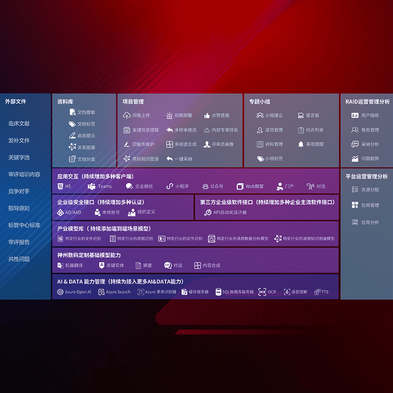 医疗器械产品上市前,,,要熟悉严格与繁复评审标准,,,,整理分析监管机构指导文件中的海量信息。。。企业急需一个智能化解决方案,,,,提升知识管理效率,,,提高评审通过率,,,,以提升其市场竞争力。。